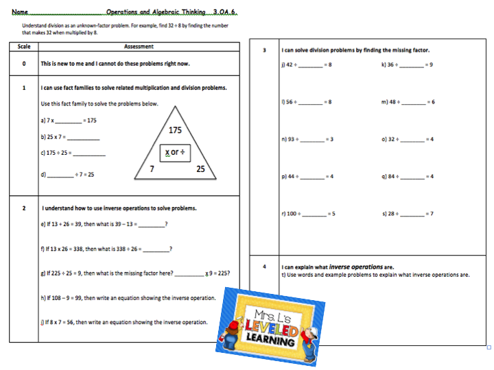 I wasn’t as comfortable with the informal method. I felt like it is important for kids to learn to assess themselves, and it’s great for making snap decisions about what to do with my next few minutes of instruction; but kids this age are still learning to be self-aware, and they don’t often have the background knowledge to be objective; some are overly confident, and some will feel insecure about their learning no matter how smart they are! So, I continued to use the informal scales on the board, and fingers in the air, but I also developed a concrete scale for the grade levels I taught so I could feel organized and give the kids real examples of what it means to make progress! Below are the posters I made for a few math standards.