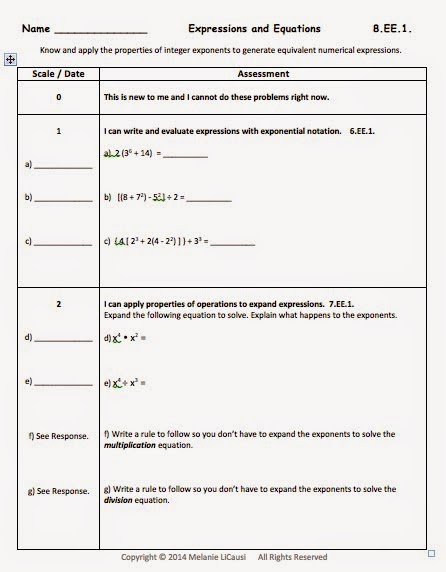 These posters align with grade-level assessments I created so that I could present a consistent and concrete way of presenting each standard to students. The grade-level tabs for this blog will give you some more examples of the assessment pages and student work.